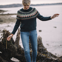 This worsted weight sweater makes the perfect companion to summer evenings and winter hikes. Andrea Mowry's Throwover features a graphic colorwork pattern making use of three different colours of Spincycle's Dream State combined with a classic stockinette stitch. A great sweater project for beginner knitters to colorwork due to the use of worsted weight wool (this will knit up quick!) and no floats too short or long to help you perfect your tension.