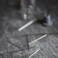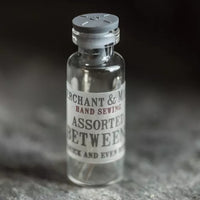 A mixture of 12 slightly different sizes encased in a Merchant & Mills glass vial with rubber stopper.