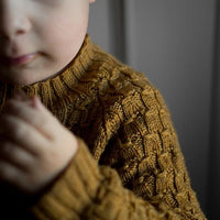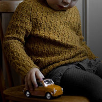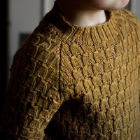 The Viggos Sweater, a beautiful pattern by Trine Bertelsen of CaMaRose, is a baby sweater knit in the round from the bottom up in a broken rib/smock pattern.