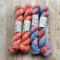 Another fun way to show off the stunning effects of Spincycle Yarns Dyed in the Wool with this design by Andrea Mowry. We have put together a few different colour combinations for you to choose from. Kits include the yarn only but needles can be found here if needed and the pattern can be purchased here.