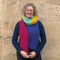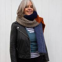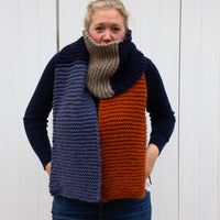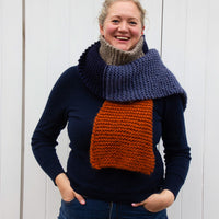 A squishy warming treat much like roasting S'mores over an open fire, this super chunky scarf kit is sure to delight! Perfect for a nice quick knit and for complete beginners; gift it or keep it for yourself. Yarn is 100% wool, for a soft and warm knit.
