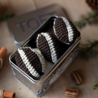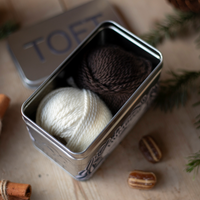 Introducing TOFT's hand-crafted range of crochet confectionery, perfect for gifting and packed into a collectable keepsake tin, for storing your tools and notions inside, or for forming part of a play kitchen when gifted with crocheted food inside. This delicious gourmet crochet kit includes the yarn to make one cute Humbug character or ten individual humbugs for a jar full of play food. Whether you are looking to indulge yourself or a loved one, this tin of goodies is sure to delight the senses.
