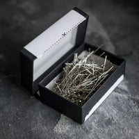 A little black box full of best dressmaking pins – 32mm x 0.65mm. Weight 28g or 1oz