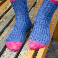 Combine colour and cables for this divine pair of toe-up socks designed to make you dance - created with no cable needle they're quick knit too!