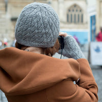 The perfect hat and mitts set for blustery days. These quick-to-knit items have a great textural lace stitch pattern which gently spirals around. You’re sure to enjoy watching the pattern reveal itself as you knit.