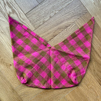 This gorgeous Rhubarb Toffee gingham colour is only available here, we picked the fabric out ourselves.