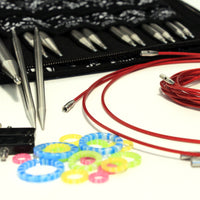 - Accessories: 1 x large cable connector, 2 x large end stoppers, stitch markers, needle gauge, 2 x tightening keys