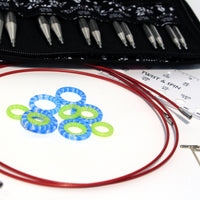 - Accessories: 1 x small cable connector, 2 x small end stoppers, stitch markers, needle gauge, 2 x tightening keys