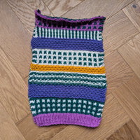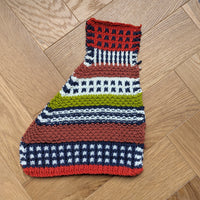 19 sts x 29 rows = 10 cm / 4” in slip stitch squares on 5mm / US 8 needles