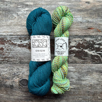 The delightful shades of Spincycle’s Dream State combine beautifully with Walcot Yarns Origin, creating a unique and one of a kind knit accessory. To make life easy we have put some of our favorite color combos together for you.
