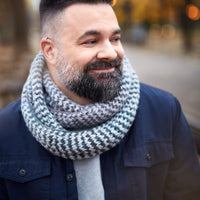 This light and airy cowl is knit in the round using a simple combination of yarn overs and knit-two-togethers. You can choose between a small cowl or a larger version that wraps around your neck twice. It’s a relaxing and engaging project, with the added joy of watching the colors shift as you knit.