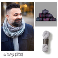 The large bundle comes with 2 skeins of Spincycle Dyed in the Wool along with 2 skeins of Fluff from Walcot Yarns x Les Garçons and the small bundle comes with 1 skein of each. Pattern sold separately.