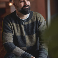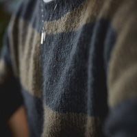 Max has designed a gorgeously cosy and wearable sweater in Fluff that we adore. Officer Sweater is a an intarsia sweater featuring broken stripes. It is knitted entirely in Fluff from Walcot Yarns x Les Garçons, at a worsted gauge, which makes for a light and airy fabric. This sweater is knitted flat in pieces and assembled at the end.
