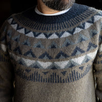 The 1983 Sweater is the perfect design to experiment with colours and textures! Choose a fluffy yarn for the body for the ultimate comfy sweater. It features a crew neck and a round stranded colourwork yoke knitted from the top down. Some rows include three colours, so experience with colourwork is recommended. There are more colourwork details at the hems and cuffs.