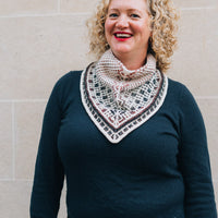 Same, but Different is a bandana style cowl by designer Cheryl Faust, knit flat from the top down, similar to a triangular shawl. The distinctive patterning is simple to create, using the mosaic knitting technique. Carefully designed to integrate seamlessly from top to bottom, those captivating spine stitches are the prominent characteristic of Same but Different! But wait, there’s more … SBD also features a split seam at the back and a continuous I-cord bind off, for a beautiful and professional looking finish.
