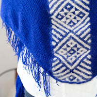 Tähesära (Starlight in Estonian) is a gorgeous shawl by designer Aleks Byrd that you'll love to knit. This steeked triangular shawl features a beautiful central panel of reversible roosimine Estonian inlay. On either side of the roosimine panel is sections of reversible textured seed stitch. The top edge of the shawl is finished with an i-cord bind off. The shawl is knit in the round from the tip up, increasing stitches on each side of the shawl every round to reach the wingspan length. Knitting in the round creates a cone shape that is then steeked to create the flat triangular shape.