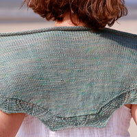 24 sts/34 rows per 4 in/10 cm in stockinette after gentle blocking. Can be blocked more aggressively to 19.5 sts/33.5 rows per 4 in/10 cm for a larger shawl.
