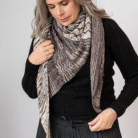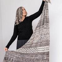 Launched at 2019’s Edinburgh Yarn Festival, the shawl’s gentle, wandering fade, stripes and texture bring to mind the secret alleyways and shifting views of the city.