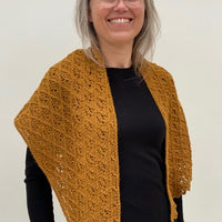 From the feel of the hot desert sun to the sight of the cholla cacti dotted all over the landscape, the inspiration for this triangular shawl design is the desert landscape in the US state of Arizona.