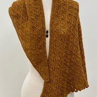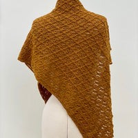 The branching structure of the fascinating cholla cacti is represented in this shawl by a twisted-stitch and eyelet pattern. The twisted stitches join and merge to build up a lattice pattern. The eyelet branches emerge from each lattice crossover. After the border pattern has been established with a stocking-stitch background, the stitch detail gradually changes to reverse stocking stitch for the shadow pattern. This subtle change in stitch pattern represents the shadows cast by the cholla on the surrounding desert land.