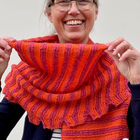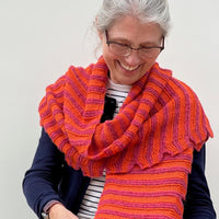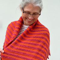 Perfect for layering, draping and wrapping, the Fluffy Stripes Shawl is knitted lengthwise as a long crescent shape. Beginning with one narrow end, the shawl is gradually increased to full depth. A single centre segment is worked, followed by decreases to match the increases.