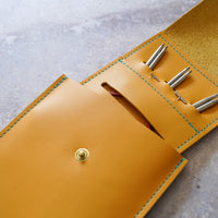 Perfect for taking your interchangeable needle with you wherever you go. Pictured here with 3 x 5" needle tips from Chiagoo, Pictured with needles ranging from a 4.5mm to a 5.5mm but you can add smaller or larger needles to suit your needs.