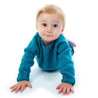 The second 6-12 month sample is knitted in shade ‘Chesil Beach’