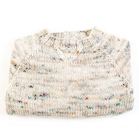 The Retrofit sweater is designed to be a relaxed fit sweater with 2” - 4” (5 - 10cm) positive ease. The sweater is worked from the bottom up. The body is worked up to the armholes, followed by the two sleeves up to the armhole. The stitches for the sleeves and body are then joined and the yoke is worked. The back hem of the sweater is ‘dipped’ with short row shaping.