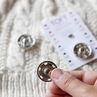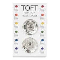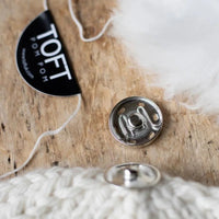 A pair of interchangable press-studs for use with TOFT natural coloured alpaca pom poms. Simply sew one half to your hat and the other to your pom pom, then you can mix and match your pom pom colour to suit your outfit and mood! It's also useful for removing the pom poms and washing your hat. These also work interchangably with TOFT bright pom poms which come with a pre-sewn stud.
