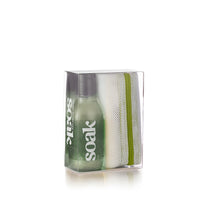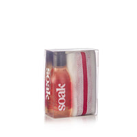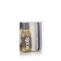 The perfect gift to give or to get. This gift set includes one bottle of Soak travel size gentle laundry soap stylishly matched to our Eco Wash Bag in the Slim - 16” circle format.