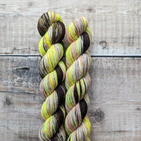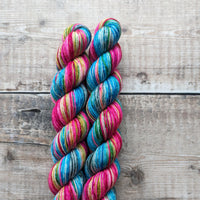 Shirley Brian Yarns are known for their fantastic use of colour. The Deconstructed Fade Sock range is a self fading sock line - these come in 2 x 50gm skeins that are perfectly matched. All are hand dyed in small batches individually by hand, your pair will be perfectly matched to each other but tones and speckles vary from set to set.