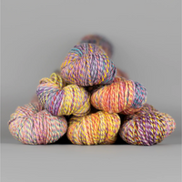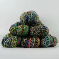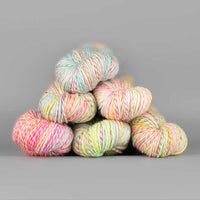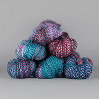 Spincycle brings all the beauty and texture of handspun yarn into each millspun skein to bring you the best of both worlds. The gorgeous Dream State is a superb worsted weight option that spins together hand-dyed fibres into a wonderfully marled skein full of mesmerising and addictive colour transitions. Sumptuous yet hard-wearing, Dream State is perfect for one-off heirloom projects.
