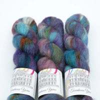 Abbey Lace kidsilk & mohair is super soft, supple, and is the perfect way to add texture to your project. Whether you use it held by itself for an open and airy fabric or hold it double with another yarn for a wonderful halo, you’ll get a light and airy finished object.