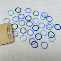These stitch markers are metal rings with a seamless enamel coating, so they never snag your yarn.