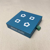 Your complete set of Flower Stitch Markers, all stored away in an adorable sliding drawer box: