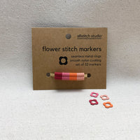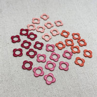 Allstitch Studio mini flower stitch markers are metal with a smooth and seamless coating, so they will never snag your yarn. Each set includes 32 stitch markers that fit your smallest knitting needles, from a size 5mm (US8) all the way down to 2mm(US0).